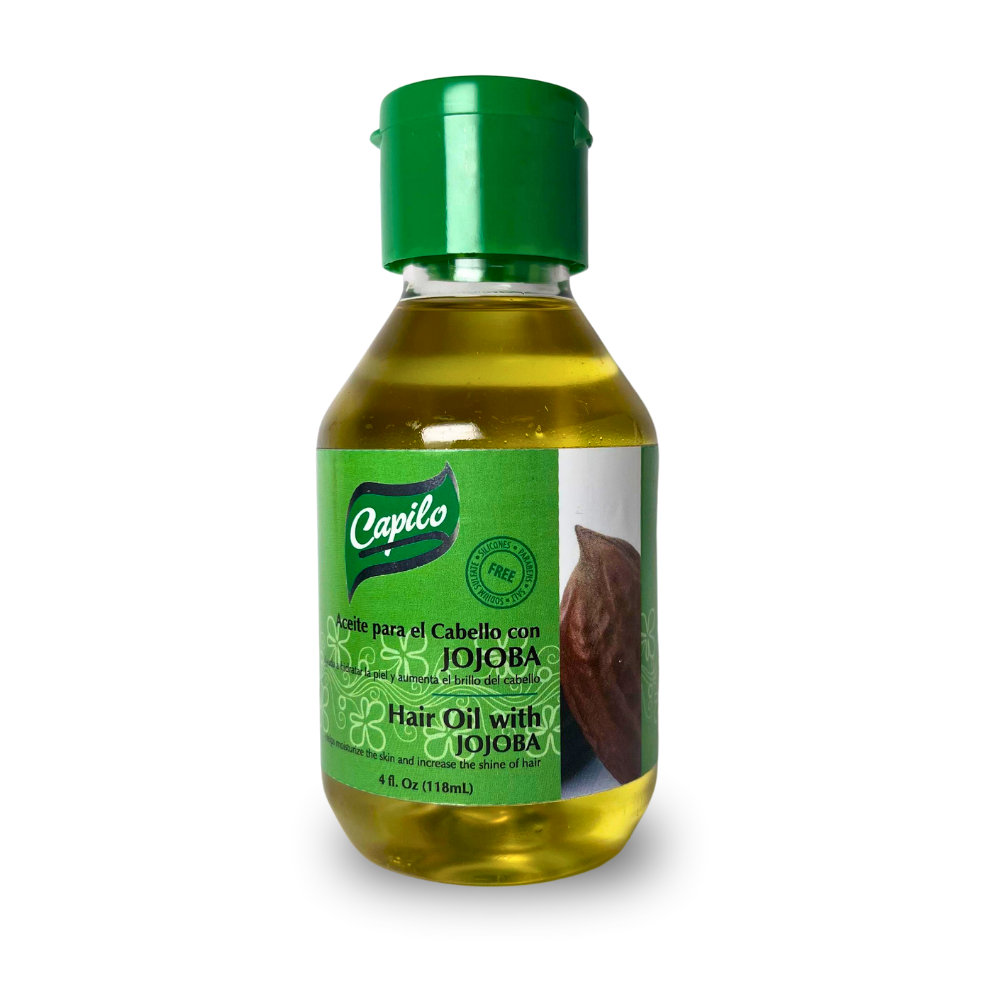 El Aceite de Jojoba Capilo 4 oz es un tratamiento natural ideal para el cuidado del cabello y la piel. Su fórmula, enriquecida con aceite de jojoba, proporciona hidratación profunda y ayuda a mantener la salud del cuero cabelludo y la piel.