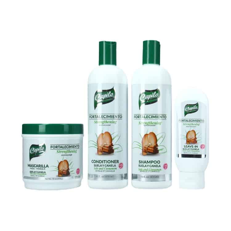 Línea Suela y Canela Capilo. Esta línea capilar está formulada con extractos naturales de suela y canela, conocidos por sus propiedades fortalecedoras y estimulantes de la circulación del cuero cabelludo. La combinación de estos ingredientes ayuda a apretar la hebra capilar, controlar la caída del cabello y promover un crecimiento saludable. Además, deja el cabello suave, brillante y con volumen.